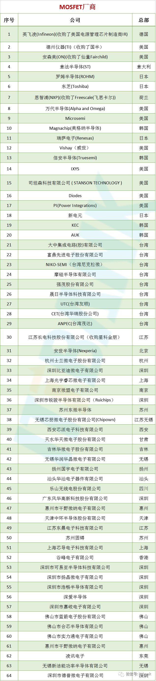 附全球MOSFET知名厂