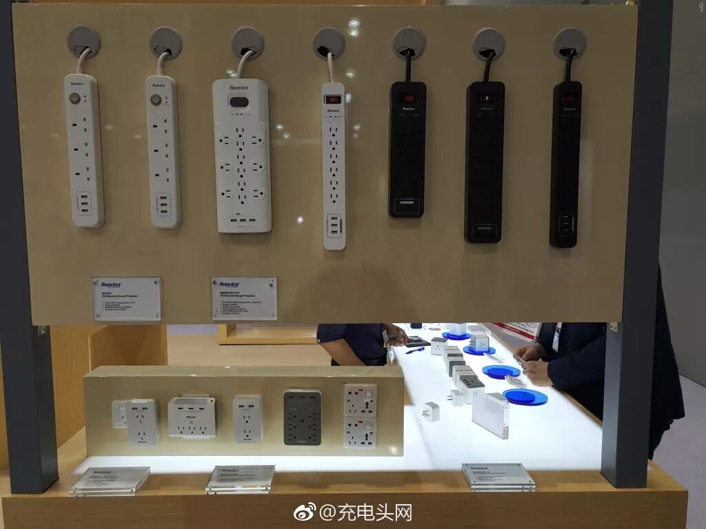 深圳航嘉科技展出多款WiFi智能插座,防电涌插座,智能魔方插座和无线充电器等产品。