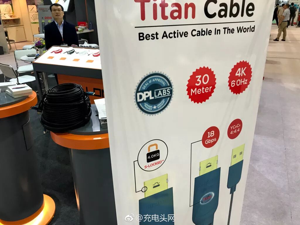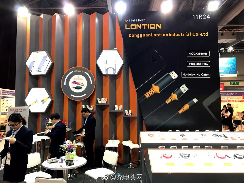 LONTION朗腾,在此次资源展上带来各式USB-C to HDMI线,支持手机投屏、PC模式。值得一提的是,现场展示有一款30m长的Titan HDMI线,在如此长度下竟然还支持4K 60Hz,传输速率达18Gbps。此外,LONTION他们也推出无线充电器系列产品,支持苹果7.5W+三星10W无线快充。